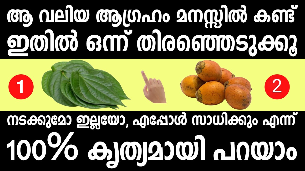വെറ്റിലയും അടക്കയും ഇതിൽ ഏതെങ്കിലും ഒന്ന് സെലക്ട് ചെയ്താൽ നിങ്ങൾ ആഗ്രഹിച്ചതുപോലെ നടക്കും If you choose either of these, betel nut or adaka, it will happen as you wish